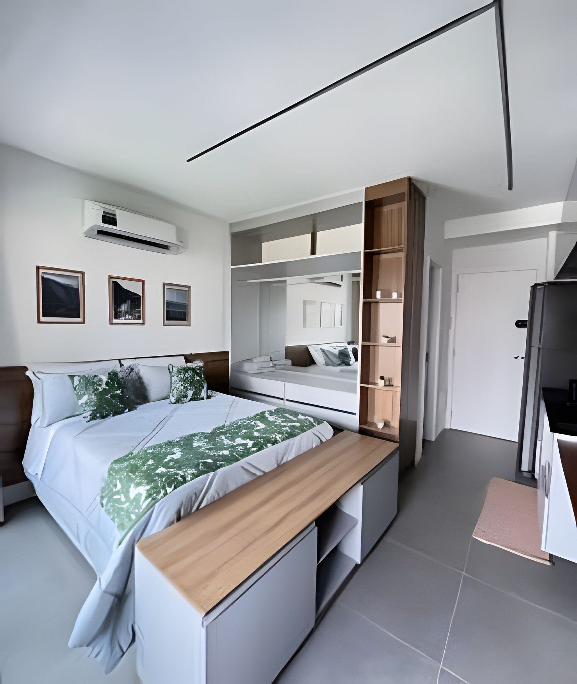Bem vindo ao Studio Brooklin que entrega o equilíbrio perfeito entre charme europeu e a modernidade de São Paulo. Com Wi-Fi, Smart TV, ar-condicionado, geladeira com freezer, cooktop, microondas, cafeteira Nespresso, cozinha completa e roupas de cama padrão hotel, ele é perfeito para sua estadia. O edifício oferece academia, piscina, coworking, sauna, sala de reunião e lavanderia. Localização excelente: 500m do metrô Brooklin, com restaurantes, mercadinho, farmácia e padaria próximos. O apartamento conta com: - Wi-Fi de alta velocidade - Smart TVs (60’’) - Ar-condicionado - Cozinha completa (cooktop, microondas, forno, Nespresso, panelas, e utensílios como tábua de frios, taças etc.) - Roupas de cama e toalhas com padrão hoteleiro - Secador de cabelo - Portaria 24 horas - Facilidades no condomínio: academia, piscina, solarium, lavanderia, espaço de coworking e sauna. Além de estar próximo a diversos comércios e restaurantes, o apartamento oferece fácil acesso a transportes públicos, supermercados, diversos restaurantes, às Avenidas Roque Petroni Jr, Morumbi, Santo Amaro e ao Aeroporto de Congonhas, tornando sua viagem ainda mais prática. TUDO! 100%! Quando você confirmar sua reserva, receberá a senha para acesso ao apartamento e um guia com todas as informações importantes para você ter a melhor estadia possível. - Seu checkin será feito direto na recepção. - Para acesso as áreas comuns como piscina, sauna, academia, coworking e sala de reuniões, pediremos na sua reserva UMA FOTO DE SEU DOCUMENTO E UMA SELFIE para liberação de acesso ao sistema do prédio e senha para acesso ao apartamento. Dúvidas, sugestões, só entrar em contato abaixo via inbox. Tempo máximo de resposta: EM até 1 hora! 🚨⛔️ IMPORTANTE: É necessário enviar ANTECIPADAMENTE os documentos com foto de todos os hóspedes pelo para controle da portaria e registro facial. Sem essas informações, a entrada no condomínio NÃO SERÁ PERMITIDA. 🚨⛔️