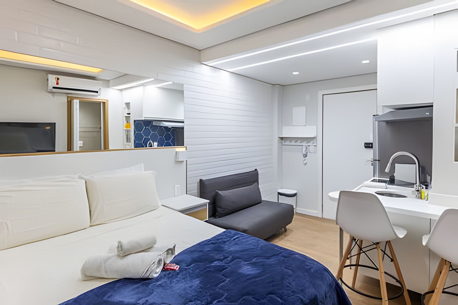 Charmoso Studio 125 Monsieur Leblon, super novo, recém reformado e cheio de estilo localizado no 1 andar. Disponível para até 4 pessoas. Excelente localização. Localizado no coração do Leblon, cercado dos principais bares e restaurantes. A poucos metros da rua Dias Ferreira, 3 quadras da praia e a 1 quadra do metrô. Travesseiros, roupa de cama, mesa e banho novos e de qualidade. Apartamento com fechadura eletrônica personalizado para simplificar o acesso. Portaria 24 horas.
