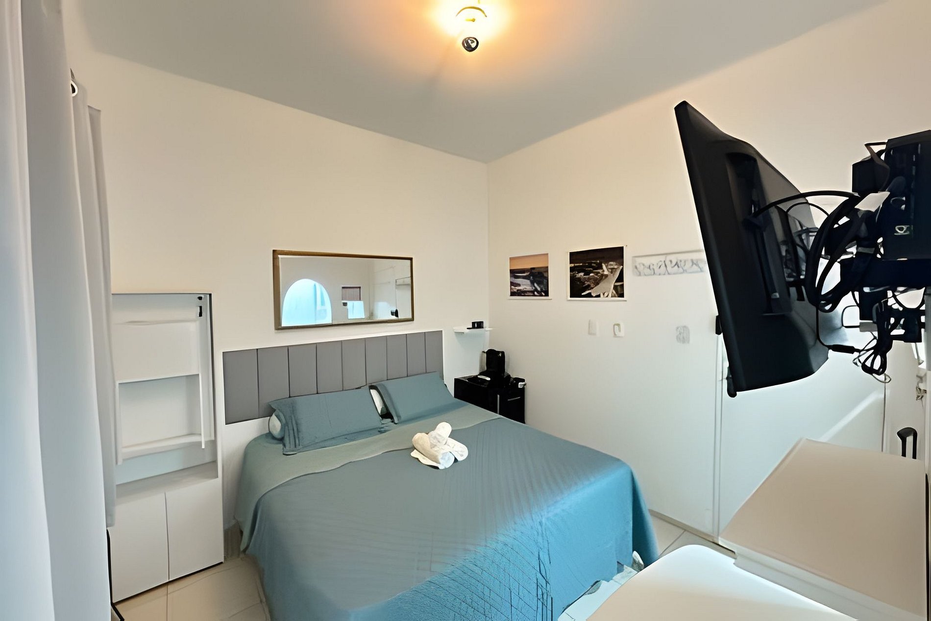 Sempre à disposição para quaisquer dúvidas ou sugestões. Lugar super agradável e aconchegante. Há uma mesa e cadeiras de escritório para trabalhos home-office, que se abre caso necessário. - Ar condicionado silencioso Split de 12 mil btus Inverter - Wi-Fi de alta velocidade. ( verificado pelo Airbnb ) - Blackout nas janelas. - TV de 50 polegadas / Netflix / Net HD - 1 lance de escada. Há uma cozinha compacta com frigobar, microondas, air fryer e máquina de café da Nespresso. Talheres, pratos, copos, taças de vinho, abridor de vinho, entre outros utensílios. Chuveiro quente e frio. Secador de cabelo e ferro de passar roupa à disposição. Tudo! Disponível 24 horas para qualquer dúvida. Tempo máximo de resposta: EM ATÉ 1 HORA.